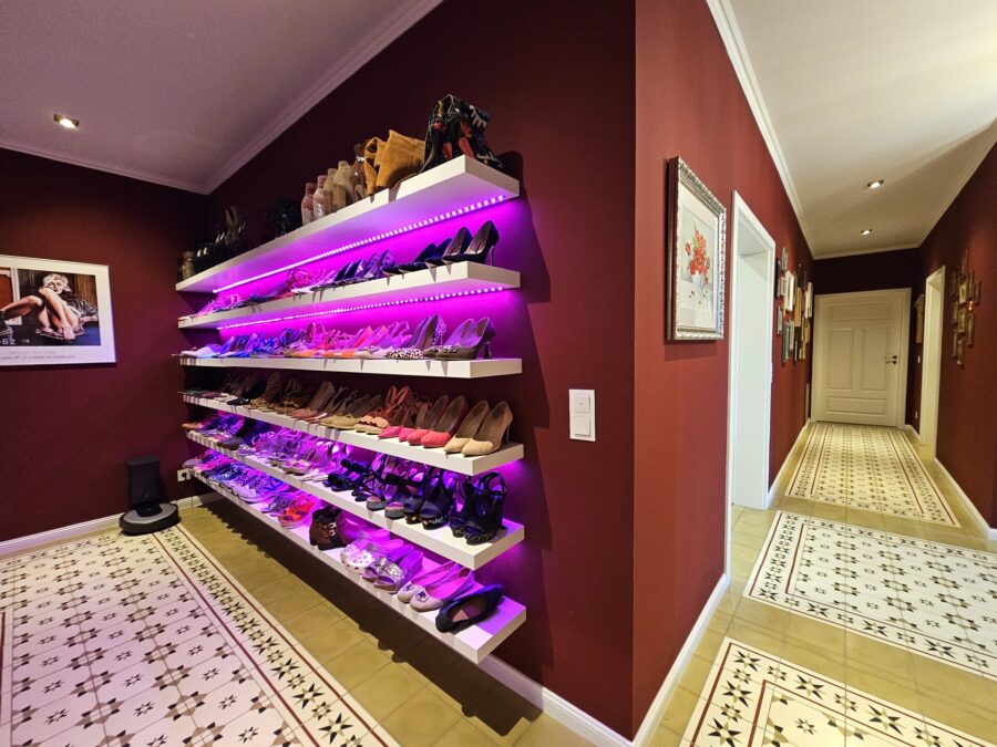 Die Diele führt zum Technikraum, der keine Wünsche offenlässt: Serverschrank, Wasserenthärter, zentrale Belüftungsanlage, PV-Technik und Heizung sind hier effizient untergebracht.