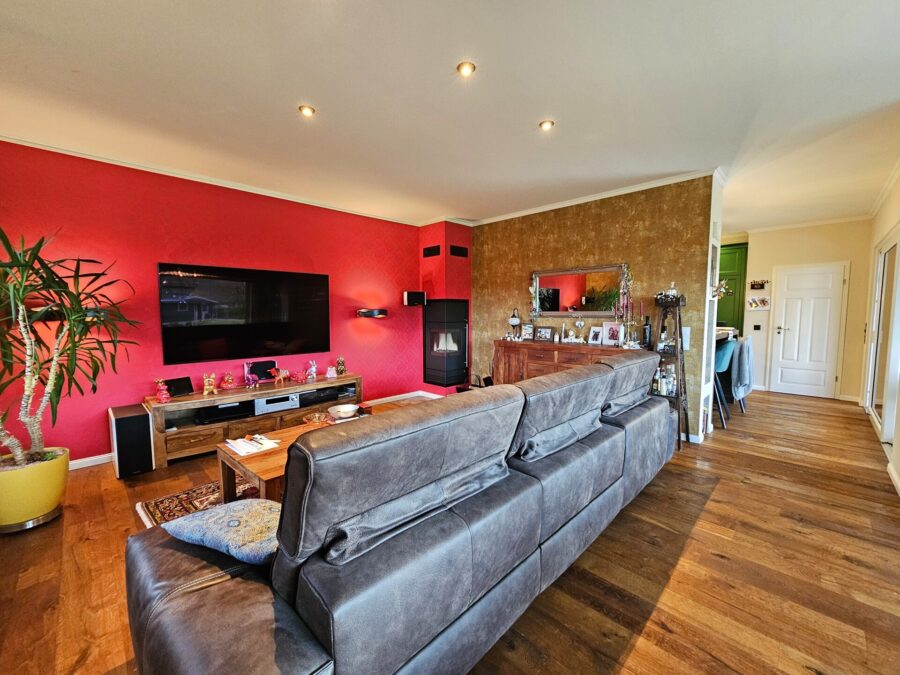 Willkommen in Ihrem neuen Zuhause auf dem Land – einem stilvollen Bungalow, der ländliche Ruhe mit modernem Wohnkomfort verbindet. Großzügige Fensterfronten öffnen den Blick in den liebevoll gepflegten Garten mit ovalem Pool, Gartenhaus und angrenzender Streuobstwiese – ein Panorama, das jeden Tag zum Genuss macht.