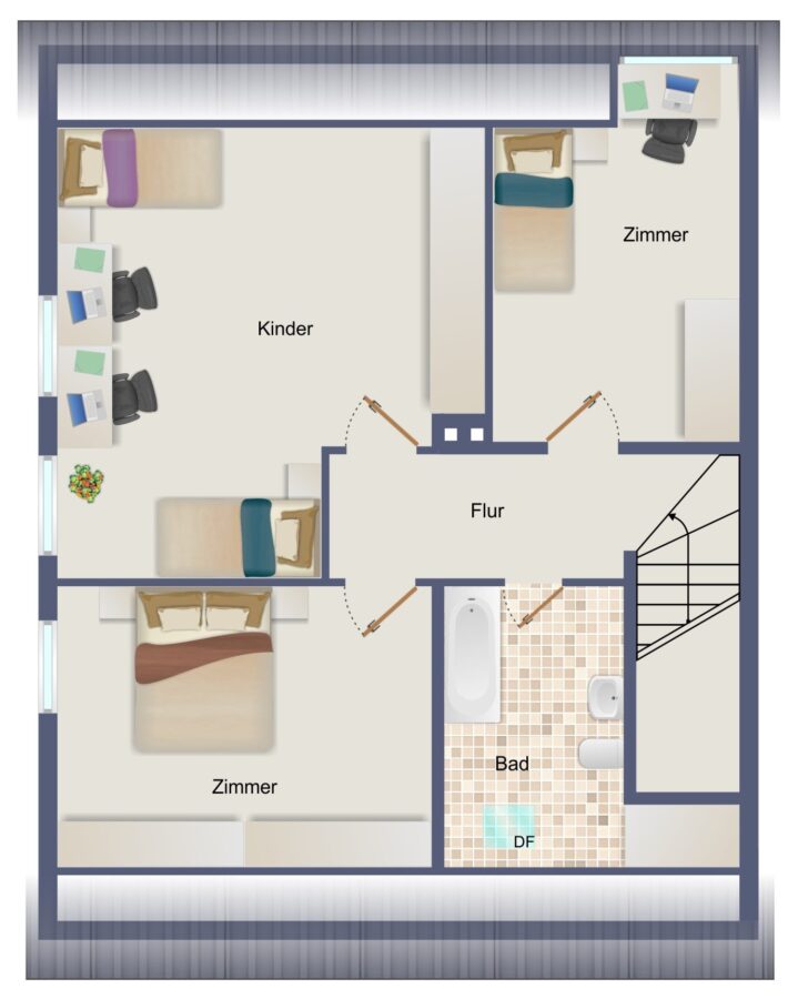Ein Haus mit Platz in vier Zimmern auf zwei Etagen, die sich auf rund 106 m² Wohnen verteilen. Dazu kommt genügend Platz zum Verstauen und andere Ideen, im Fachjargon so schön „Nutzfläche“ genannt. Wie Sie diesen zusätzlichen Raum nutzen wollen, dafür haben Sie sicherlich Ihre ganz eigenen Ideen.