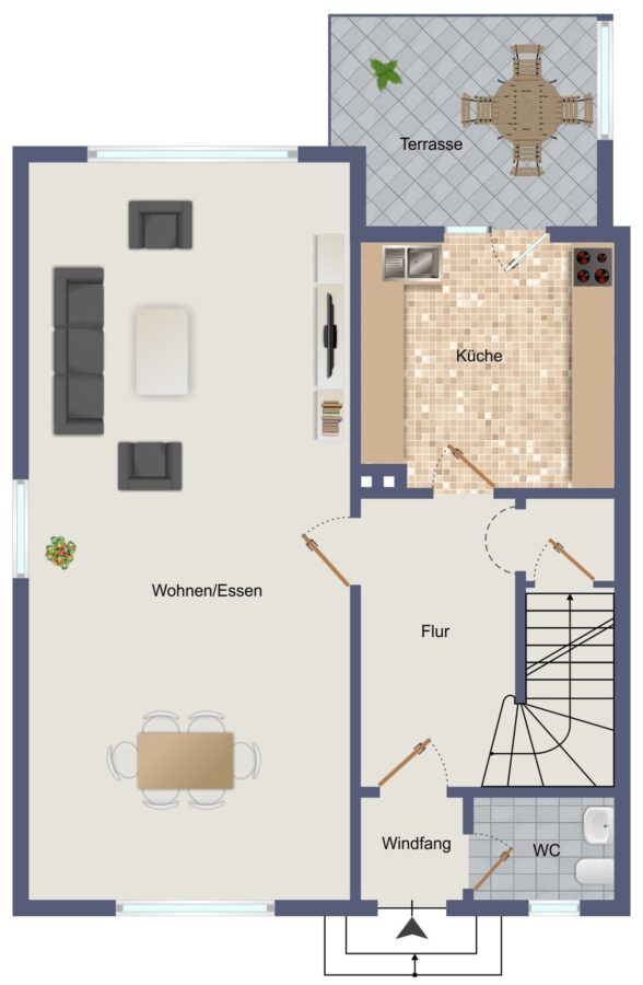Im Erdgeschoss finden Sie im Eingangsbereich eine Gästetoilette.