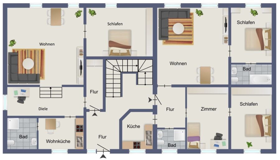Das Mehrfamilienhaus verfügt über insgesamt sechs Wohneinheiten unterschiedlicher Größe, die ein breites Mietklientel ansprechen und eine solide Vermietbarkeit gewährleisten.