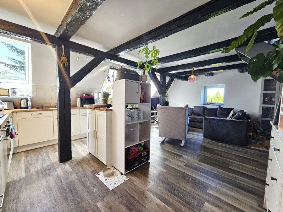 Großzügige Wohneinheit mit Wohn-/Schlafzimmer, Küche, Kinderzimmer, Flur, Duschbad sowie ausgebautem Spitzboden.