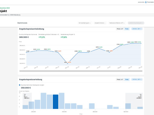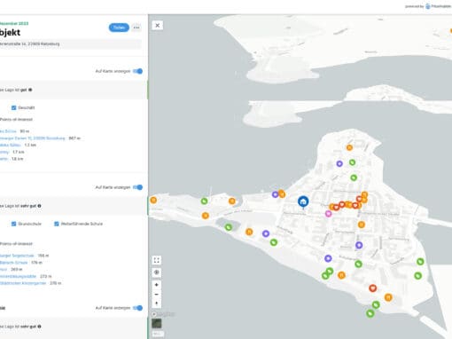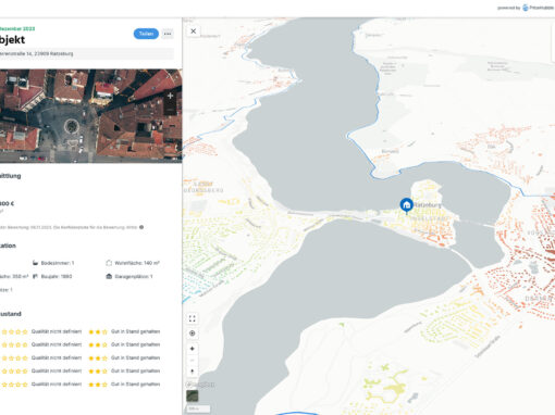 Ermittlung einer Marktwertspanne und Einordnung der Immobilie anhand der Lage, Aussage über die Marktentwicklung in den letzten Monaten in der Umgebung Ihrer Immobilie. Bewertung der Lage Ihrer Immobilie aus Sicht des Geräuschpegels und der Nahversorgung (Einkaufen, Bildung, Gastronomie, Freizeit und Gesundheit) rund um Ihr Objekt.